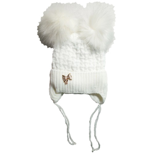 Шапка на девочку  (Велсофт) с двумя помпонами