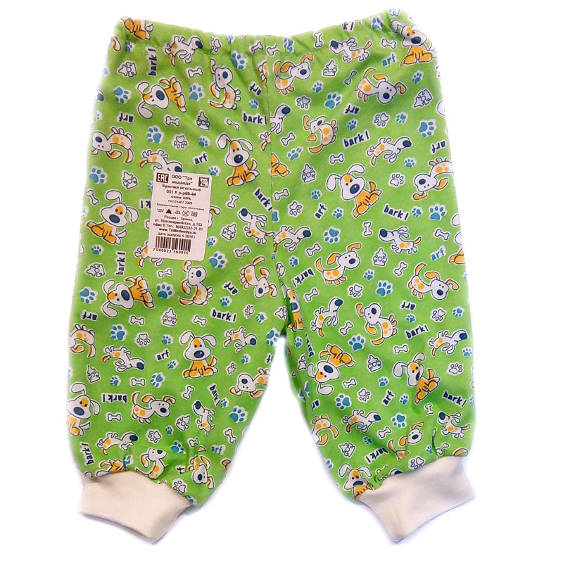 Детские штанишки по доступной цене, изготовлены полностью из 100% хлопка. Для того чтобы Три медведя брючки 051К держались на ребёнке, внутрь сверху вшита обычная резинка, а снизу предусмотрены манжетики. Обратите внимание, покупка производится сразу комплектом из 5 штук, разного оформления и цветовой палитры, но если необходимо увеличить количество товаров – нажмите на «+» ниже стоимости. Цвет штанишек при этом нейтральный, он не бросается в крайности и не диктует, что мальчику, а что девочке (поверх нанесено набивное изображение). В каждой партии расцветки отличаются.